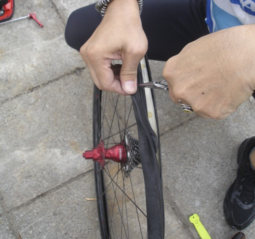 先在家中确保轮胎的稳固性,还要準备几项工具,以备半路轮胎刺到东西而破胎。